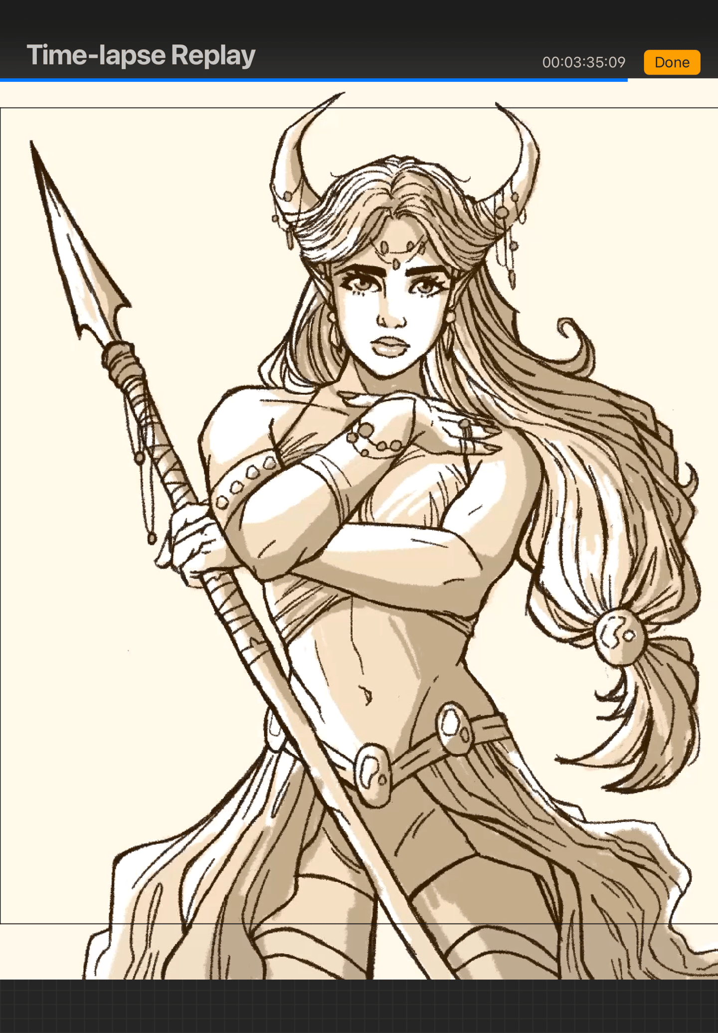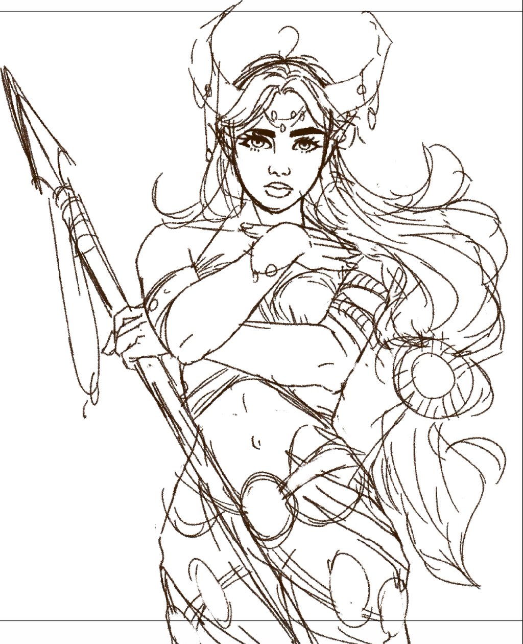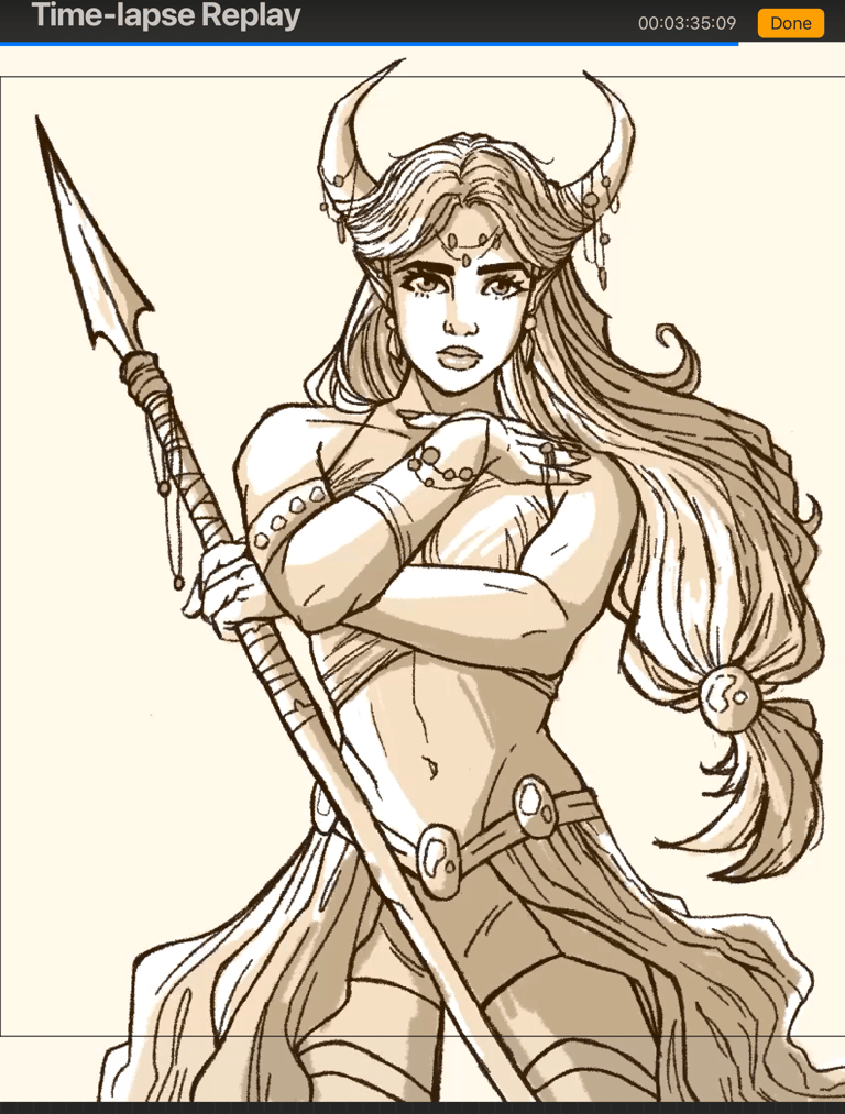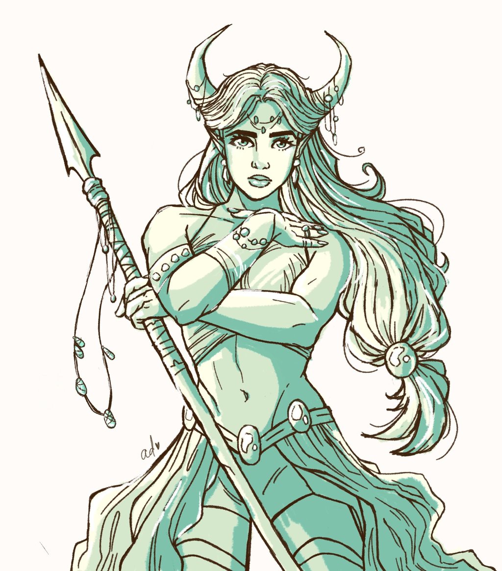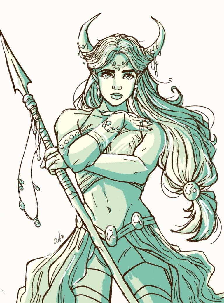 This is where the piece starts taking shape. I decided to add horns and other details to this particular piece - plus a spear!